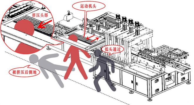 一是倪某某安全意识淡薄,冒险从注塑机与覆膜机之间的通道穿越,在其穿过覆膜机的覆膜区域时,头部抬起的过程中不慎被覆膜机运动机头挤压致死;