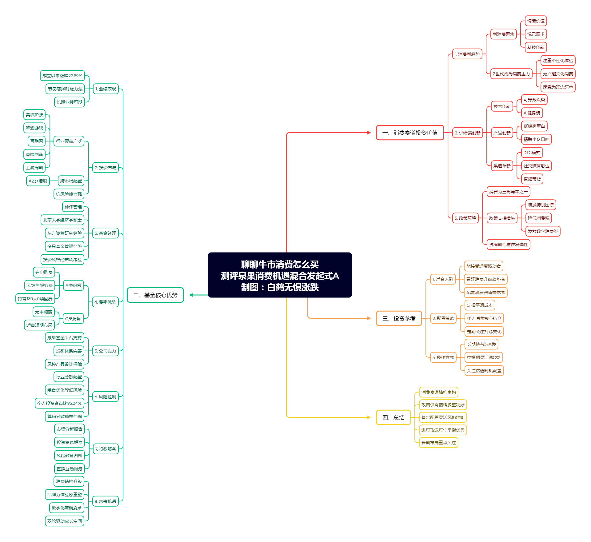 今天白鹤君就来和大家唠唠:为啥现在必须重视消费赛道?以及选择这支基金的原因。文章有点长这里也是做了个思维导图方便各位整理思路,可以点开放大了看下的。